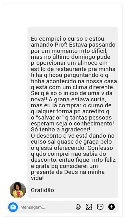 Assim que você compra o curso e o pagamento é confirmado, o acesso é enviado automaticamente para seu e-mail, e você já pode começar seus estudos imediatamente.